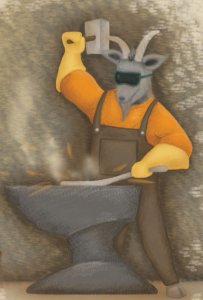 Billygoat Vukašin is well know blacksmith who is hard working and always there to provide best solutions to needs of all in town Silver Star.